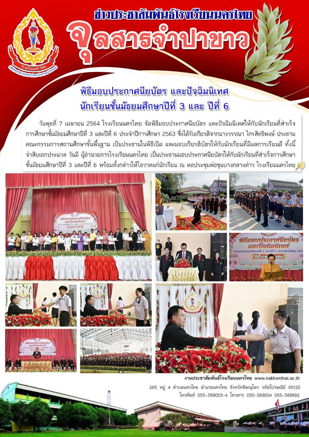 พิธีมอบประกาศนียบัตร และปัจฉิมนิเทศนักเรียนชั้นมัธยมศึกษาปีที่ 3 และปีที่ 6 โรงเรียนนครไทย