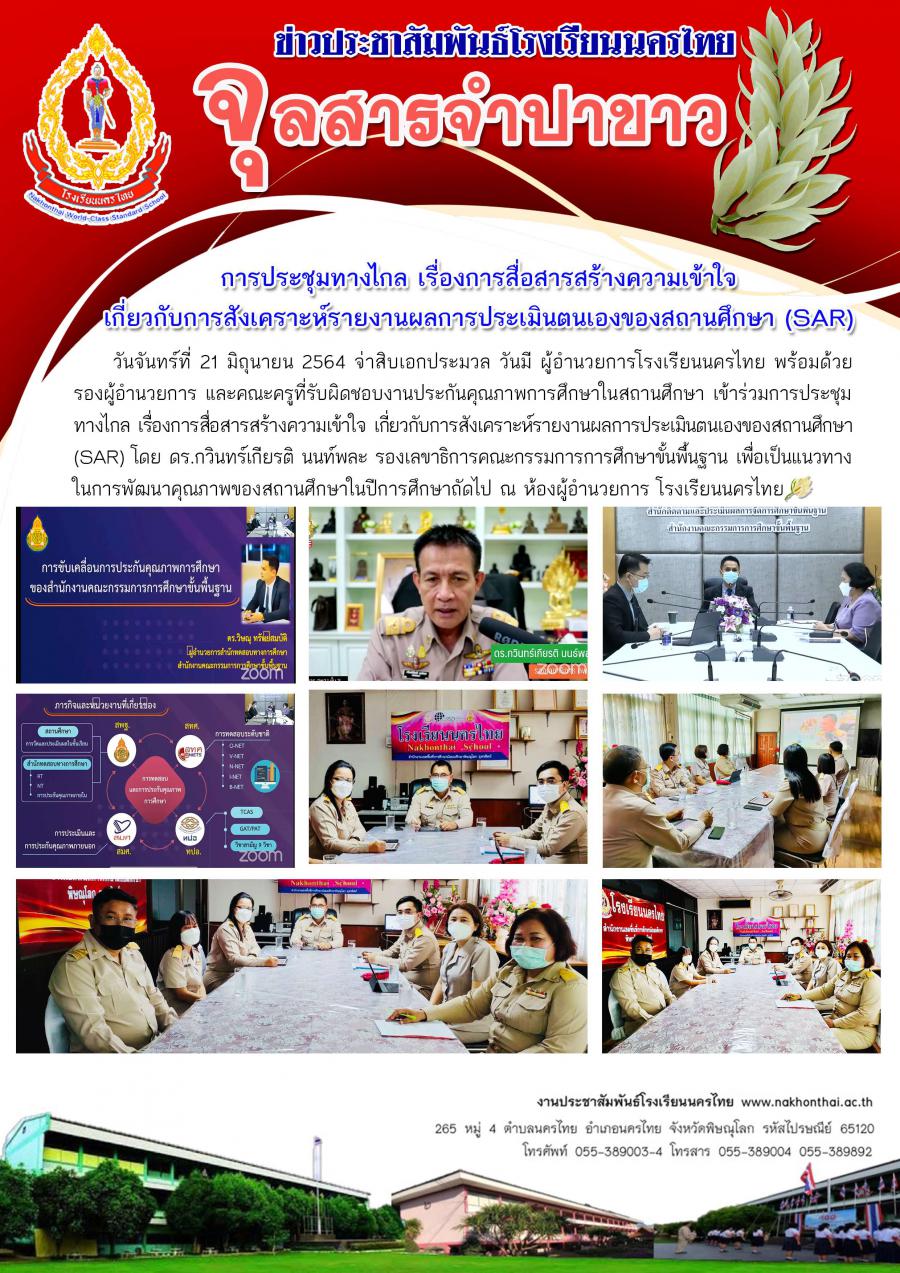 การประชุมทางไกล เรื่องการสื่อสารสร้างความเข้าใจ เกี่ยวกับการสังเคราะห์รายงานผลการประเมินตนเองของสถานศึกษา (SAR)