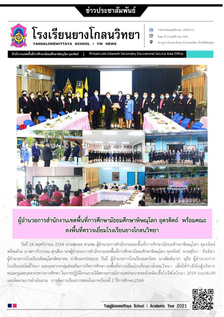 ผู้อำนวยการสำนักงานเขตพื้นที่การศึกษามัธยมศึกษาพิษณุโลก อุตรดิตถ์ พร้อมคณะลงพื้นที่ตรวจเยี่ยมโรงเรียนยางโกลนวิทยา