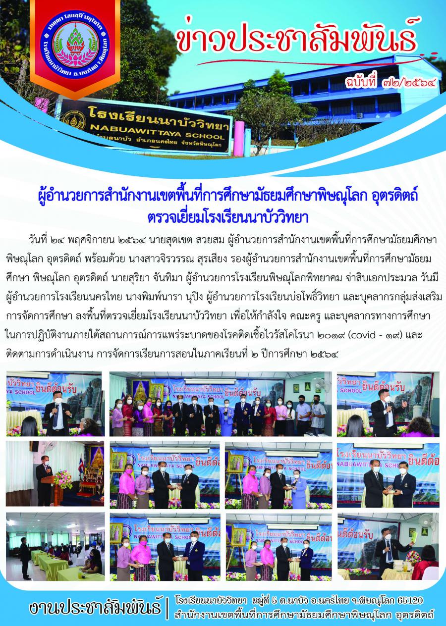 ผู้อำนวยการสำนักงานเขตพื้นที่การศึกษามัธยมศึกษาพิษณุโลก อุตรดิตถ์ พร้อมคณะลงพื้นที่ตรวจเยี่ยมโรงเรียนนาบัววิทยา
