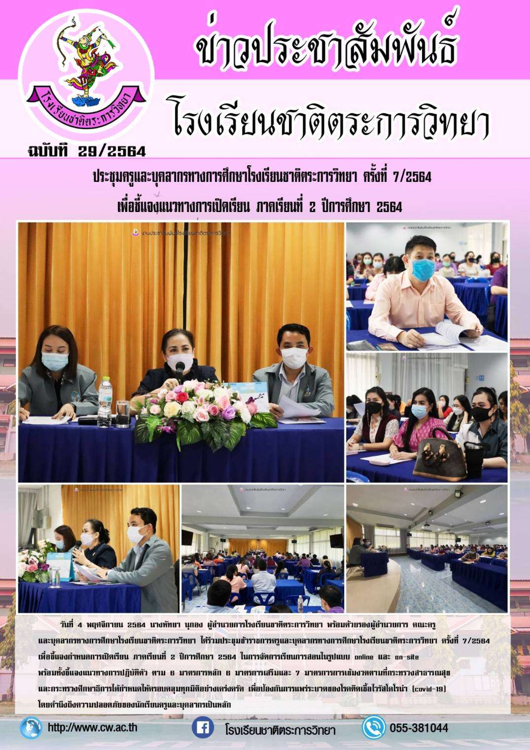 ประชุมครูและบุคลากรทางการศึกษาโรงเรียนชาติตระการวิทยา ครั้งที่ 7/2564 เพื่อชี้แจงแนวทางการเปิดเรียนภาคเรียนที่ 2 ปีการศึกษา 2564