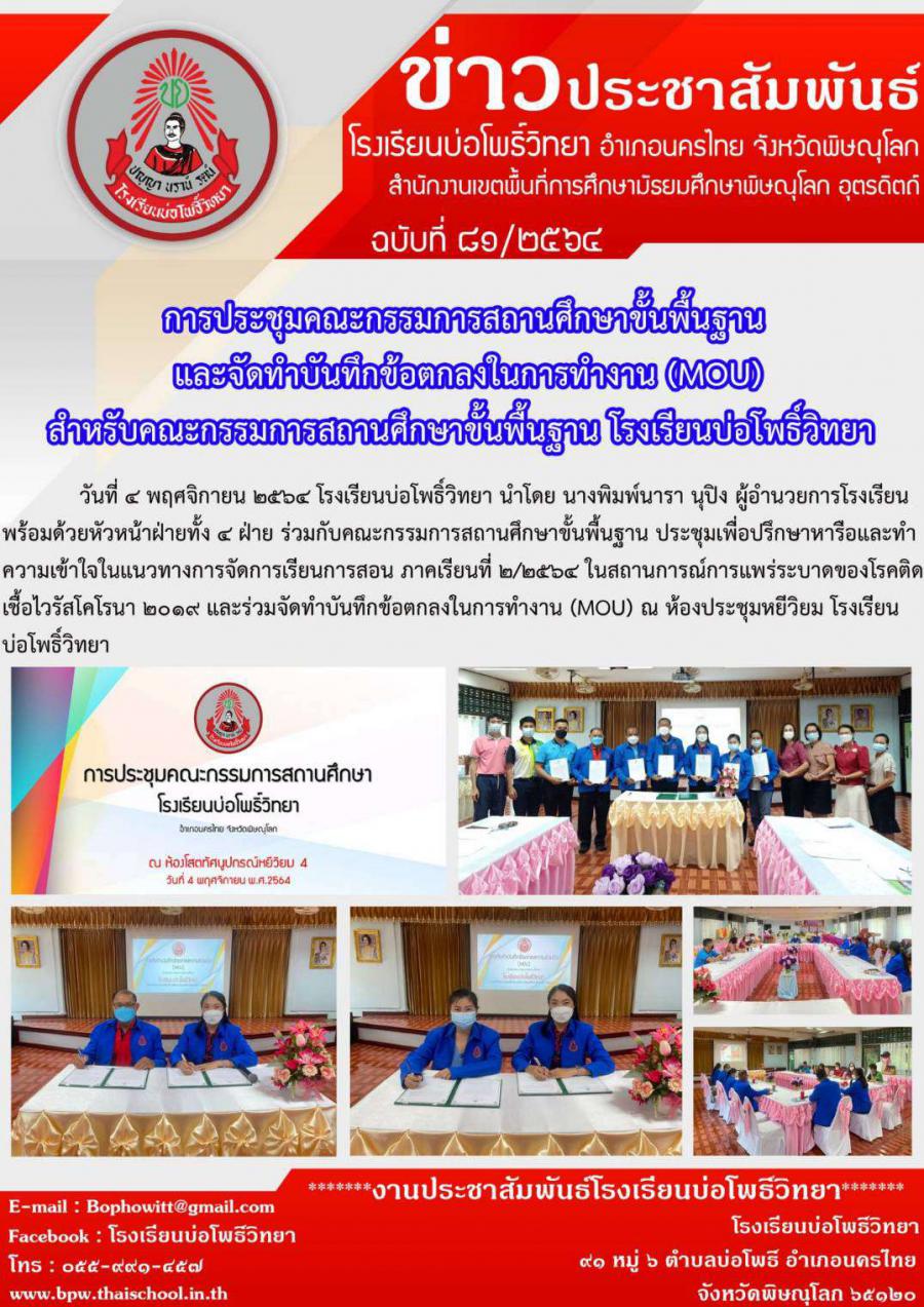 การประชุมคณะกรรมการสถานศึกษาขั้นพื้นฐาน และจัดทำบันทึกข้อตกลงในการทำงาน (MOU)สำหรับคณะกรรมการสถานศึกษาขั้นพื้นฐาน โรงเรียนบ่อโพธิ์วิทยา